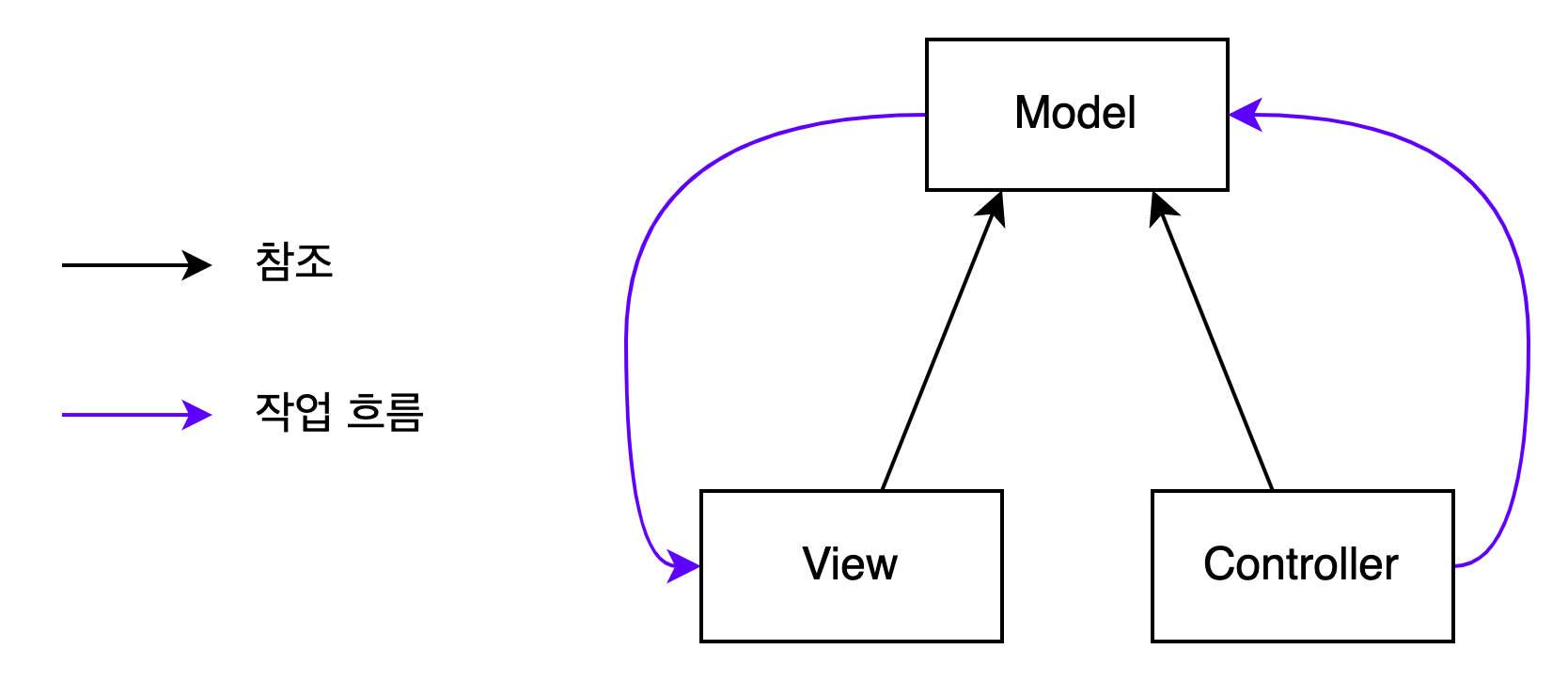 그런데 MVC 패턴을 얼핏 알고 있는 사람이라면, 다음 그림을 떠올리며 뭔가 이상하다는 것을 느낄 수도 있습니다.