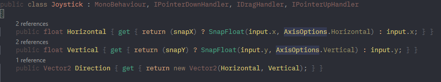즉, 움직여야 할 오브젝트의 앞을 향하는 벡터(로컬좌표계에서 Vector3.forward) 에다가 Joystcik의 Vertical 값을 곱해주고, 오른쪽을 향하는 벡터에다가 Horizontal 값을 곱해주면 되겠습니다.